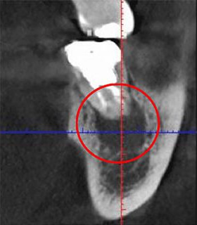 この黒い影は、炎症が発生しているところです。つまり、レントゲン写真だけで診断していたら、この炎症は見逃されてしまいます。気付かない間に病状が進み、いずれ抜歯を避けられなくなるかもしれません。